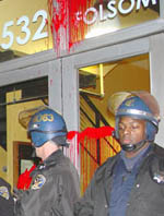 On March 26th a public read-out for Justice in Oaxaca, Mexico was held just prior to David Solnit's hearing for allegedly throwing red paint on the entrance to the San Francisco Mexican Consulate last fall. At 12pm, Roxanne Dunbar-Ortiz, Arnoldo García, Rebecca Solnit, Larry Bogad, and others read from their works outside of the Mexican Consulate between 1st and 2nd Streets. Afterwards, a pre-trial hearing on felony vandalism charges against David was supposed to have been held at the Hall of Justice. The District Attorney's office was not prepared for the pre-trial--which should have been a basis to drop the case--but the judge refused to grant attorney John Viola's motions and re-scheduled the case for April 18th, 9am, department 9, 850 Bryant St., SF.