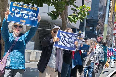 Activists assembled in Alta Plaza Park, San Francisco's billionaire epicenter, on November 15 for a rally and march to demand, "housing, healthcare, and food for all," from the ultra-wealthy. During the rally, Socialists and Communists set up literature tables, and people distributed kits containing a whistle and ICE reporting instructions. The first stop on the march was David Sacks' mansion, then it was on to Larry Ellison's.