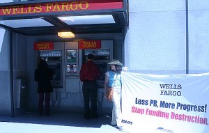 Unlike competitors such as Citigroup, Bank of America, and JPMorgan Chase, Wells Fargo refuses to take seriously its role as a bankroller of global warming, and consistently avoids making any specific commitments to curtail oil investments, safeguard endangered ecosystems, or to uphold human rights in areas where it invests money. Moreover, Wells Fargo profits from other types of social injustice such as predatory lending and charging exorbitant fees to low-income immigrants seeking to wire money home to their families overseas.