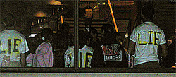 Protesters gathered in lower Sproul Plaza near Zellerbach but the entire area was cordoned off by the police. About 300-400 people carried signs calling for an end to the occupation while others spoke on microphones about the failure of Barak's supposed offers to the Palestinians. In the middle of Barak’s talk about 25 protesters stood up (wearing t-shirts with the word "lie" printed on them) and walked out. They were briefly detained but then let go.