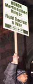 Tributes to the work and life of Dr. Martin Luther King, Jr. took place throughout the Bay Area this past week. Events included a demonstration against the war and racism in downtown SF on Jan 16, the day after MLK's birthday. See photos. On the observance of his birthday, hundreds of school children and community members met up with labor, Free Mumia, and peace activists to march in the rain from Caltran to Civic Center to honor and represent the legacy of his non-violent work for justice. Read more