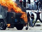 11/18/2004 "Police fought street battles for a second straight day today with university students protesting the Asia-Pacific Economic Cooperation (APEC) summit in Chile and the weekend arrival of US President George W. Bush. Protesters in downtown Santiago were sprayed with tear gas from jeeps and knocked to the ground with blasts from water cannon trucks."