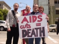 On Wednesday, August 5th, protesters met in San Francisco to protest Governor Schwarzenegger's budget cuts which disproportionately target health services fighting the spread of HIV. Due to Schwarzenegger's line item vetoes in this year's budget, an additional 85 million in funding is being cut from HIV/AIDS-related organizations and groups.