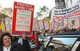 Previous Protests: California Nurses Association Contingent at 3/19 Anti-War March | Schwarzenegger Runs into Fresno Protest | Nurses Protest At Governor's Super Bowl Party | Workers in California Struggle to Save Lunchbreaks