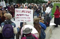 11/29/2004: The Wellstone Democratic Club of Silicon Valley and The Dean Democratic Club of Silicon Valley organized a protest against the mainstream media and its "near complete silence concerning voting irregularities in the 2004 presidential election" today. In response to allegations that they were conspiracy theorists, several speakers pointed out that the voting irregularities in the election needed to be investigated regardless of whether an investigation would swing the election to John Kerry. Speakers said that part of the bedrock of a Democracy is verifiable election results that can be trusted.