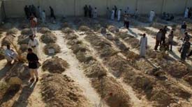 The US attack on Fallujah is over for now. A UN human rights investigator is calling for an independent probe into crimes committed by the US during the month long siege of the city. Western journalists are now able to visit the city and report on the devastation caused by US bombs, tanks and snipers. Fallujans are now able to dig out their dead from collapsed buildings and bury them in a mass grave set up in what had been a soccer stadium. During the month of April an estimated 1,361 Iraqis were killed; many of the deaths occurred during the US raid on Fallujah.
