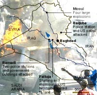 On June 24th, 2004 over ninety people were killed and over 280 wounded in a series of bombings that hit Mosul, Ba'qubah, Ramadi, Baghdad and Fallujah. Christian Parenti Reported From Baquba on Thursday's events (Audio).