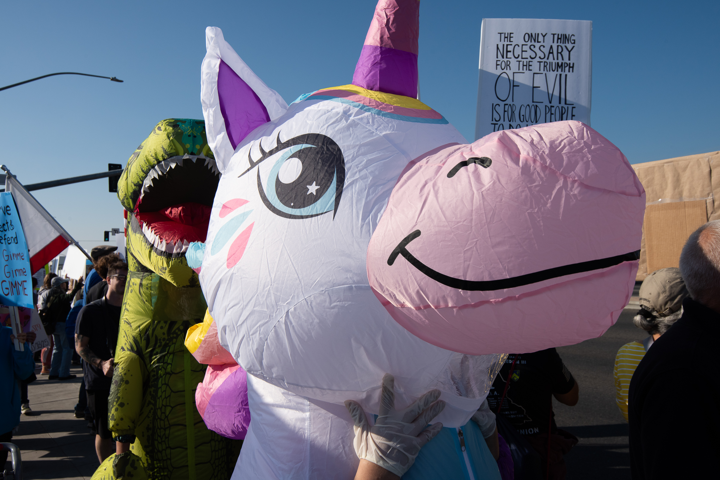 Inflatable costumes at the No Kings...