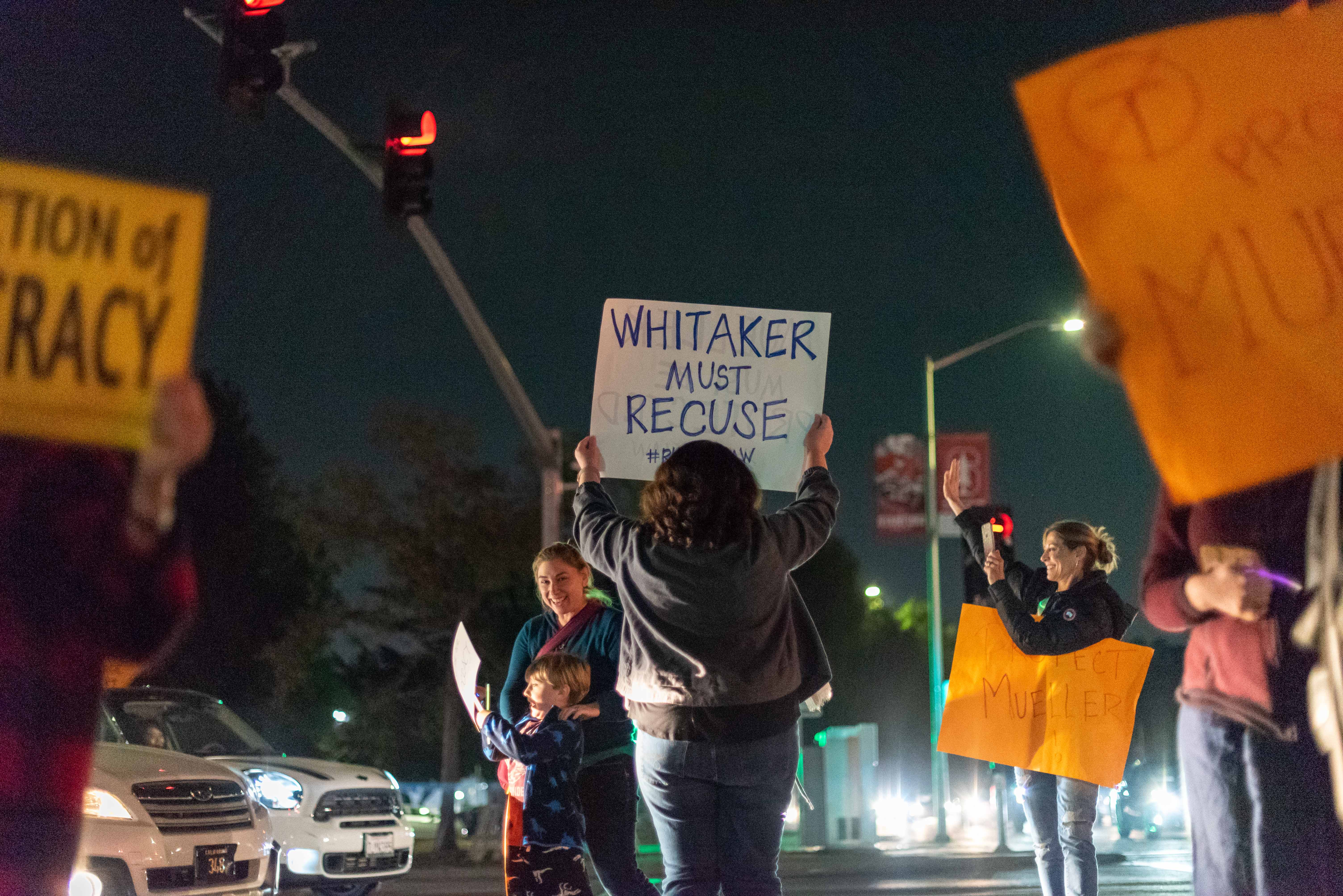 Demonstrators sing along with the G...
