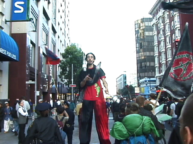 A juggler on stilts at Mayday Reclaim The Streets in San Francisco.