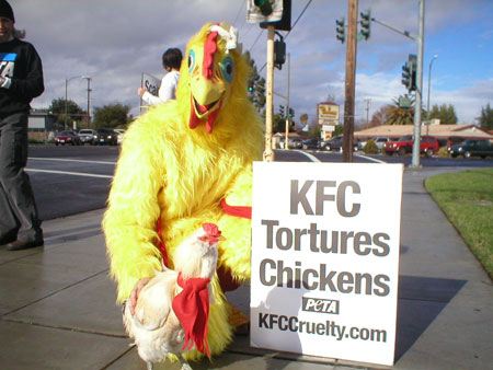 Monthly KFC Protest in San Jose with help from the chickens themselves!