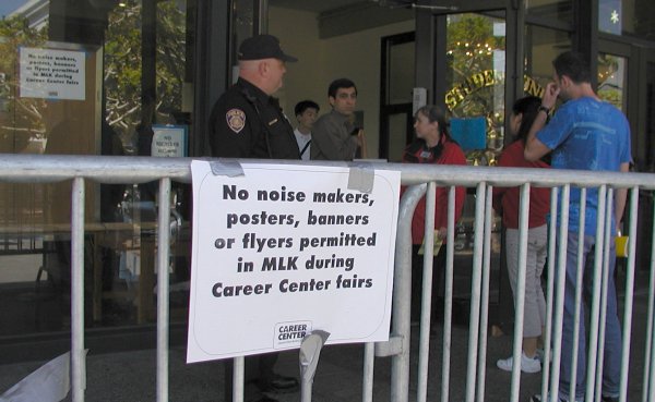 Recently, the Associated Students at the University of California (ASUC) passed a resolution that argued that military recruiters (who refuse to recruit gays and lesbians) violate the University of California's anti-discrimination policy and therefore should not be allowed access to ASUC facilities (SB 107). Still, military recruiters have announced their intention to show up at the Career Fair in the MLK student union. We have to build the biggest protest possible to let them know that we won't stand for the military's discriminatory policies and that we oppose the war on Iraq