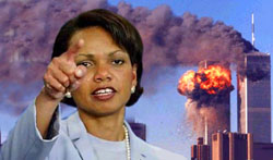 Relatives of victims of the World Trade Center bombings gasped in horror and disgust as Condoleezza Rice testified at the 9-11 Commission's ninth public hearing that she had briefed President George Bush with an August 6, 2001 CIA-memo entitled "Bin Laden Determined to Attack Inside United States". As Rice danced around the majority of the questions put to her by the 9/11 Commission, several relatives yelled, "Shame!" while she continued to deny that the White House had knowledge prior to 9-1...