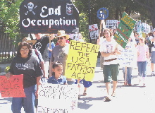 Wednesday April 7th, 2004 was the anniversary of the April 7, 2003 community picket shutdown of Iraq war profiteers APL and SSA docks at the Port of Oakland. Hundreds of activists returned for a rally and march in opposition to the war and to last year's crackdown on dissent by the city of Oakland.