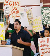 3/24/2004: Cesar Cruz, who is a poet, an organizer, and, until this week, a conflict management consultant at a school in Richmond, has been fired. He has been helping to organize a 70-mile march from Richmond to Sacramento during April 9th-16th of elementary students, parents, and faculty to protest the budget cuts affecting the school at which he worked. Cruz is also helping to organize a youth center near a police-occupied high school, and he was part of a campaign to either get rid of a...