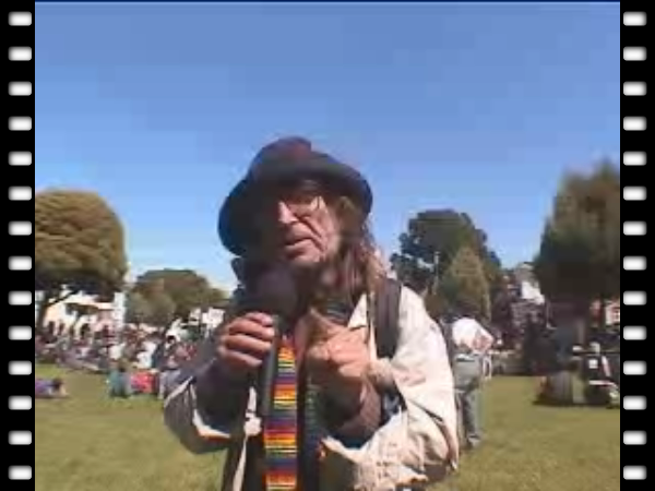On April 21, 2001, in solidarity with anti-FTAA protests in Quebec, the US-Mexicao border and around the world, a colorful and spirited march and rally happened in San Francisco. Towards the end of rally Diamond Dave took my mike and did his thing. about 2min20sec. More follows.