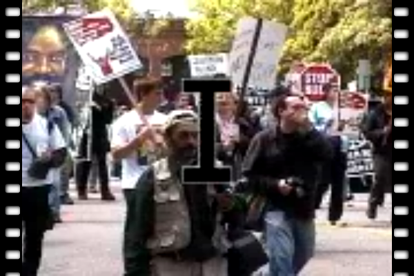 One of two QuickTime movies (180x120) here; slightly bigger versions (360x240) on my web site. Each is about 3 minutes long and shows only a small bit of the A20-march approaching San Francisco City Hall.