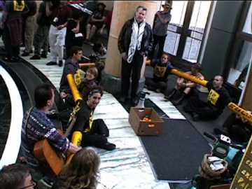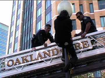 At the request of Federal Bldg. managers, 50 Oakland police officers and the fire dept. are dispatched to arrest and/or cite ~15 protesters on "trespassing" and "interering with business operations".