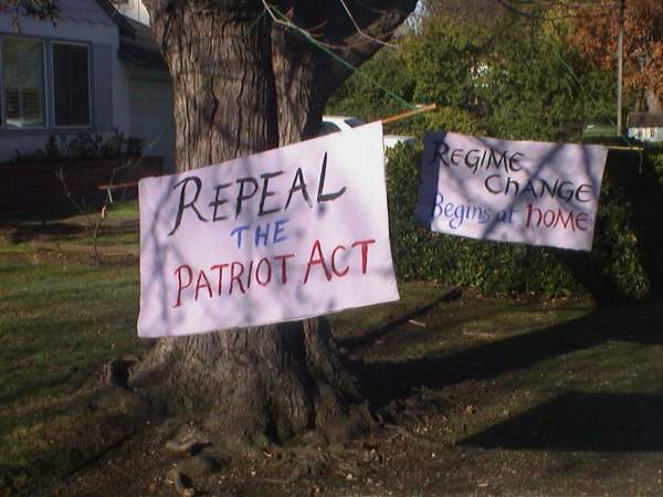 To stop the White House from committing further crimes, against humanity, against our Constitution, the Bill of Rights, against democracy, this year we demanded the impeachment of Bush and the Repeal of the Patriot Act.