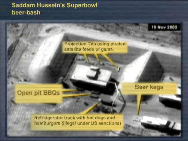 -----Now, combine the two: both saddam and weapons of mass destruction/ weapons of mass destruction and saddam. Either way you write it, it still spells DANGER.