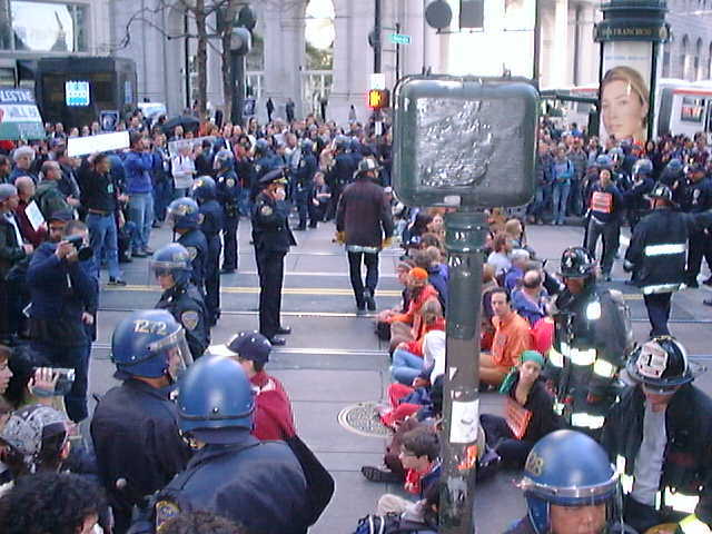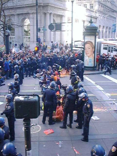these pics are from around 8:00 am on thursday march 20th, day x, the people lockdown at market and sutter with lockboxes made of pvc, chickenwire, ducktape and other common household items