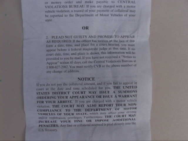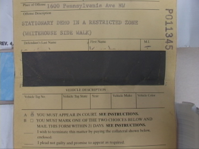 I took the following photos of the ticket, the Miranda Rights card, Inspection stickers and other articles that I have from my recent trip/arrest - Washington DC - International Women's Day.