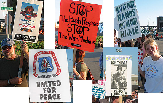 May 12 Community Picket at the Oakland Docks. American President's Line (APL): Stop War Profiteering! Stevedoring Services of America (SSA): Stop the Corporate Invasion of Iraq! Not In Our Name joined Direct Action to Stop the War and more than a thousand others to shut down the Oakland docks tonight.