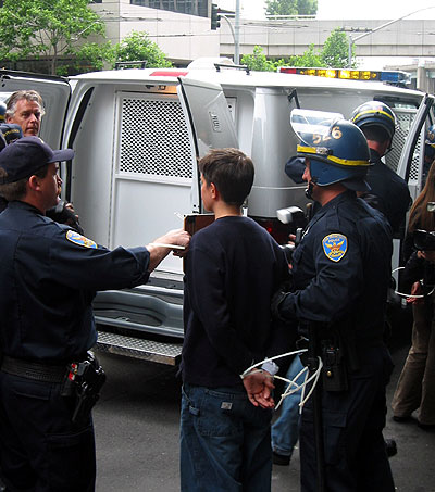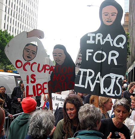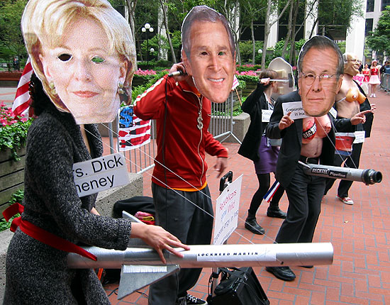 Two hundred anti-war protesters converged this moring on Bechtel's world headquarters in downtown San Francisco to demand that it be "held accountable, not more profitable!"