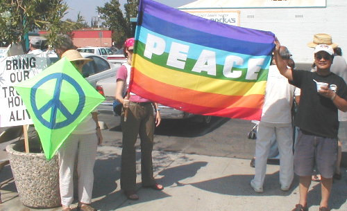 Over 100 people came to the Tower District in Fresno, in solidarity with people throughout the country demanding an end to the US occupation of Iraq. Peace Fresno organizer Ken Hudson said he was there “to call for the troops to come home now and to see a UN transitional government in place in Iraq.”