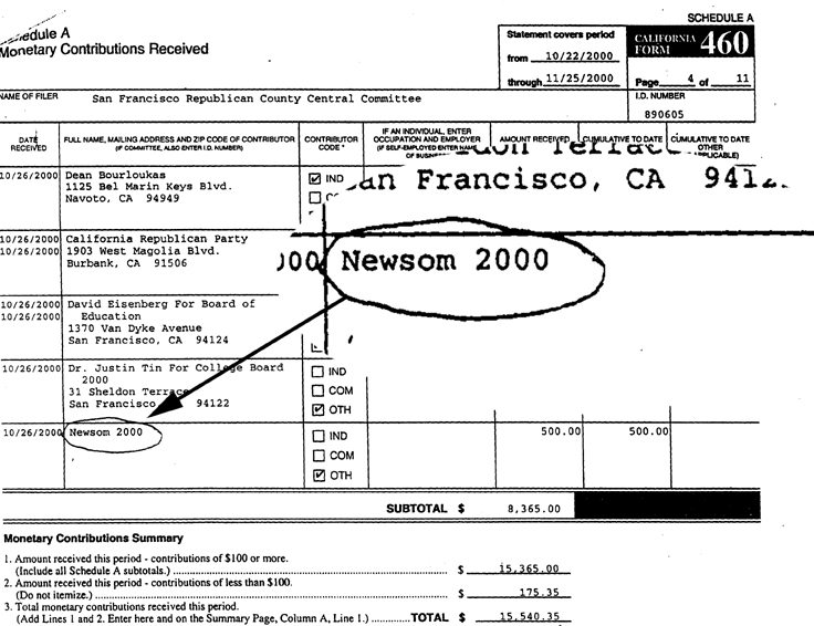 Newsom Busted: Gave the Republican Party $$$ to support Bush against Gor ein 2000