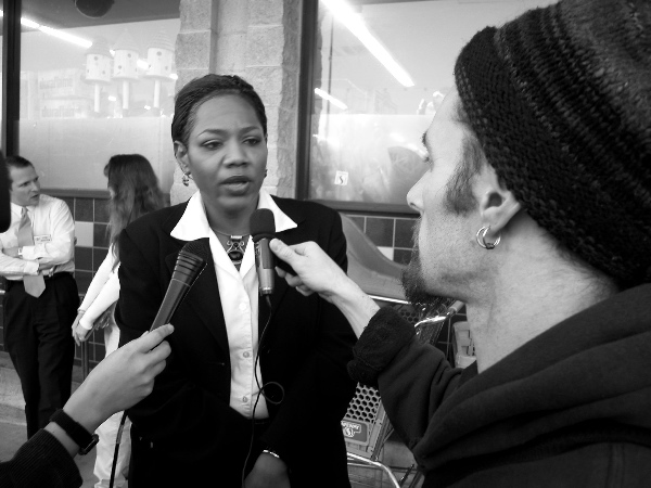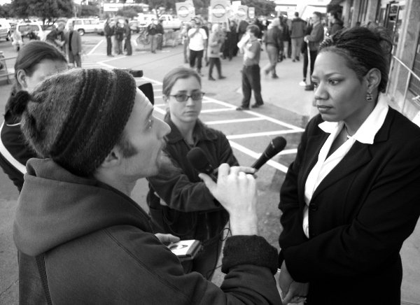 On Wednesday, Feb. 11 at 5:00 PM, people gathered at the Mission St. Safeway in Santa Cruz to send George Bush a message: