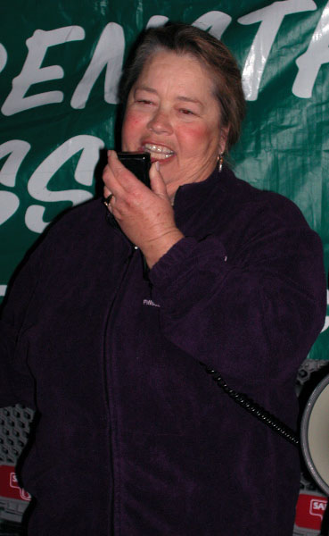 About 150 people were at the Mission St. Safeway in Santa Cruz on Wednesday, February 11, to send George Bush the message that, "Healthcare IS Homeland Security... and Steve Burd is a Domestic Terrorist."