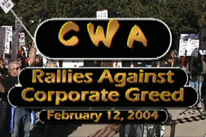 Video from the Rallies on Feb. 12, 2004. Communication Workers rally in Sacramento and Oakland against Corporate attacks on healthcare and job security.