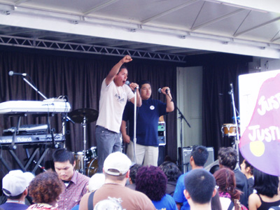 Anuradha Mittal from Food First breaks it down to the crowd. Food First urges us to transform the corporate controlled food system to a life-sustaining and a just food system. Food First staff members joined the Taco Bell Freedom March from East LA to Irvine and kept a journal of their experience on their website. They also helped to raise funds in order for a bus of folks to ride down to the rally at Taco Bell headquarters from the SF Bay Area. Thanks Food First...