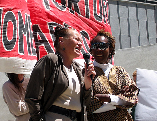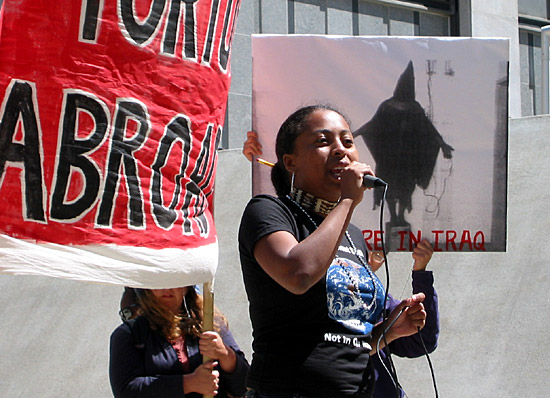 As part of Reclaim the Commons week in San Francisco, 200 people rallied for racial justice in front of the SF Federal Building this morning. Speakers included wards (i.e. survivors) of the California Youth Authority who make the connections between the shocking torture photos of Iraqi prisoners and the conditions within the California juvenile lockups right here at home.