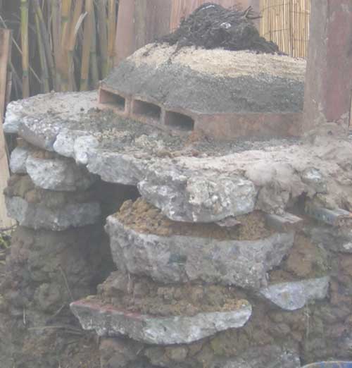 This top photo shows the oven structure around 1pm. It is actually about a foot taller, but the photo I took had buckets in the way.
