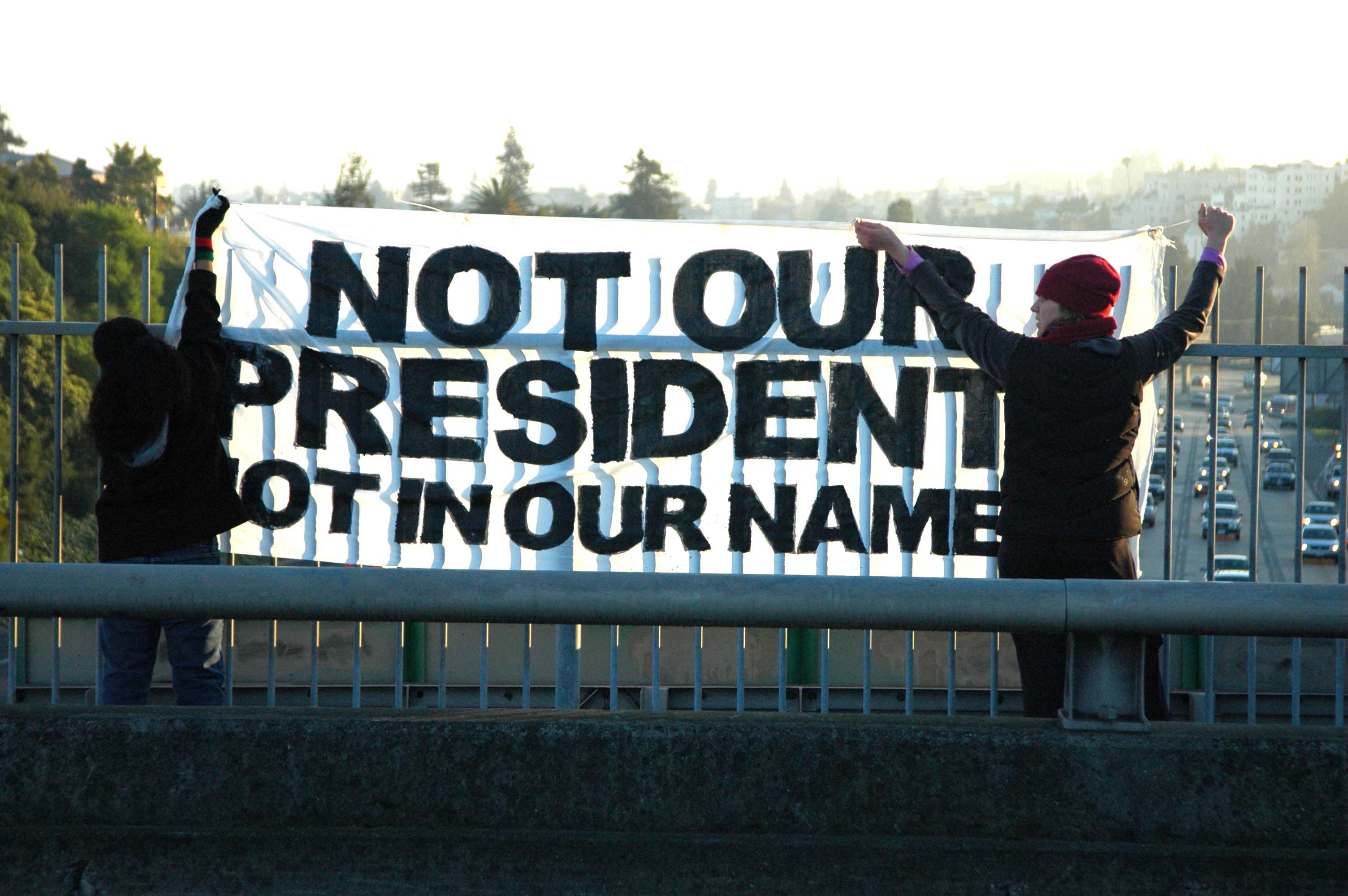 declaring NOT OUR PRESIDENT! NOT IN OUR NAME!