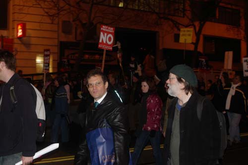 Included are photos from the rally and the march including a flag burning along market street and of police entering the crowd.
