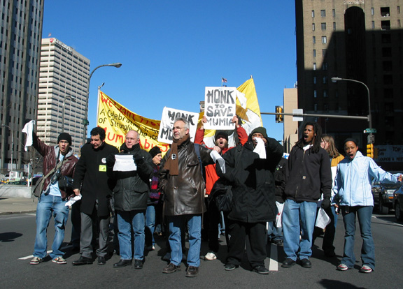 On Feb.11, 2-300 supporters of Black death-row political prisoner Mumia Abu-Jamal gathered in Philadelphia.... They marched from the Friends Center and circled City Hall before the crowd joined the French delegation in City Hall where they recieved Liberty Bell awards from the City of Philadelphia.