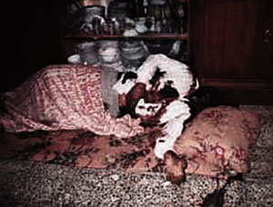 This quarter seemed to have been singled out for punishment during the second siege. We moved from house to house, discovering families dead in their beds, or cut down in living rooms or in the kitchen. House after house had furniture smashed and possessions scattered.
