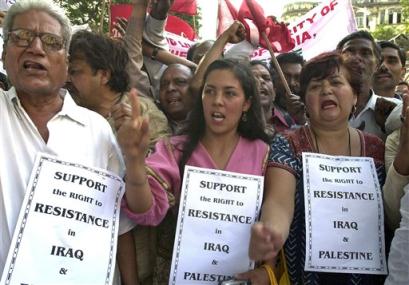 THE PICTURE OF PROTEST AGAIN AGRASSION INSPIRED ME. IT NOT TH ONLY FIGHT OF MUSLIM. THE CAUSE OF WAR IS NOT TH RELIGION. TH WAR IS FOR OIL. THE WAR IS FOR TH INTERST OF CORPORATE BODY. TH WAR IS FOR EXTENDING TH GLOBAL MARKET.