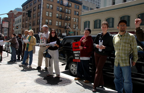 Two dozen activists protested outside the Bay Area Red Cross offices in San Francisco on Monday, April 18, to spotlight the International Committee of the Red Cross's shameful neglect of Palestinian political prisoners. They held up pictures of Palestinian prisoners and their families, and gave out several hundred fliers calling on passersby to contact the ICRC and demand they do their job.