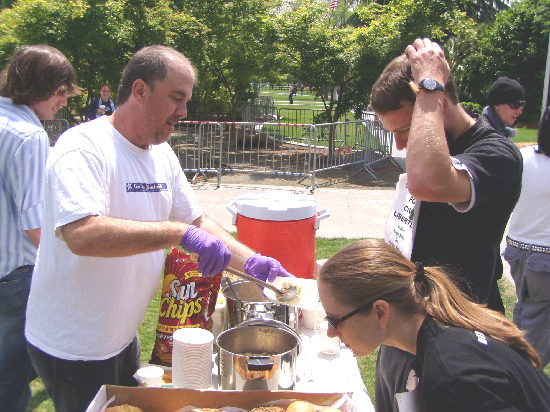 Just before the fast ended, the students sat in a drum circle, the pace getting more and more intense as they closed in on the last minutes. The students broke their fast when the local Food Not Bombs group arrived with a vegetarian soup and some pastry.