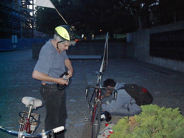 This demo is being held at 7-8am and 8-9pm each day. This is finals week, and these hours were chosen to accomodate people's working schedules, and having a large or noisy protest when lots of campus people are around is not the objective here. Rather, the idea for people to regularly circle the building on bicycles with banners depicting images of owls and de Goya's paintings of a nightmare scene, and to create awareness of our concern through thoughtful persistence all week.