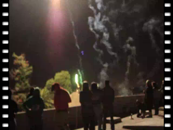 Okay, it wasn't literally a war zone, just a bunch of extremely loud fireworks in every direction. As the very real war in Iraq continues to take lives and waste resources, Americans across the country delighted themselves in jingoistic small-town parades and/or shows of light and thunder in the night sky. In Oakland, neighborhood fireworks give the professional displays a run for their money. The threats of "zero-tolerance" for fireworks made by authorities beforehand apparently failed to dim the annual nighttime show in the East Bay this July 4th, as viewed from a West Oakland rooftop.