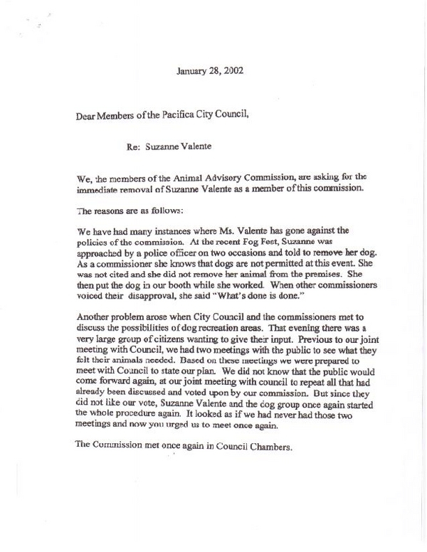 Ocean Beach DOG's extremist views have also ostracized Ocean Beach DOG from the broader animal welfare community. They were kicked off Pacifica's Animal Advisory Commission because of their extreme tactics and views. See attached file. Responsible animal welfare groups such as Action for Animals, Guide Dogs for the Blind, and dozens of others want to stop the death of dogs in our parks, but groups like Ocean Beach DOG—a group that views dogs as toys to be played with and replaced when they break—promote the continued death and injury of dogs. Its time for people to know that Ocean Beach DOG represents an antiquated view of our relationship with animals, one that is being replaced as our own species evolves.