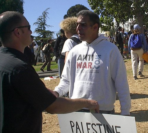On Sept. 24th, many cities in the U.S. including San Francisco, United for Peace and Justice and ANSWER bought permits to allow thousands of people to protest continued involvement in Iraq. Here are pictures of a rally in Dolores Park, individuals and contingents including an anarchist group who police tried to prevent from joining the larger march, the ending location in Jefferson Park, some minor antics at the park, and then the Love parade a few blocks over.