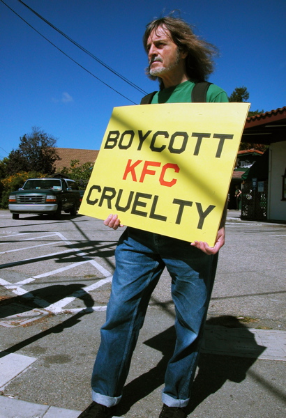 On Sunday October 2, I met up with The Progressive Animal Rights Alliance of Santa Cruz at the Food Bin on Mission St. in Santa Cruz. We marched a few blocks to the KFC on Mission St. to call attention to KFC's cruelty to animals.