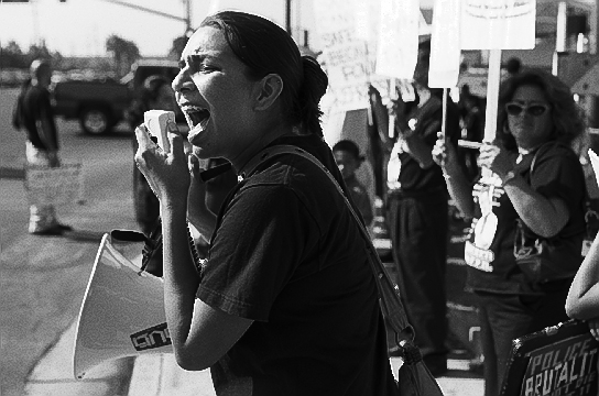 The October 22 Coalition held its annual police brutality demonstration Saturday. This year the event was held in San Jose’s predominantly Latino East Side. About 75 people gathered at Emma Prusch Farm Park and then marched around the area of Story and King roads. Exhorted by activists on bullhorns, the crowd attracted attention from passing motorists, who took leaflets, honked, and showed their fists. Back at the park, the protesters rallied and bought tamales and sodas. On hand were family members of people killed by police, who spoke to the crowd. Among them were the partner of Cau Bich Tran, who died at the hands of the San Jose Police in her kitchen in 2003, and Regina Cardenas, daughter of Rudy Cardenas, who was killed by a State Narcotics Agent. That agent, Michael Walker, is currently on trial in San Jose for manslaughter.