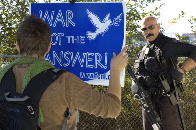 The Eureka Military Recruiting Center was shut down for the day by approximately 200 peaceful protesters of the U.S. led war on Iraq. Present at the protest were students, peace groups, Buddhists meditating for peace and people young and old who are disgusted with Bush’s war for oil.